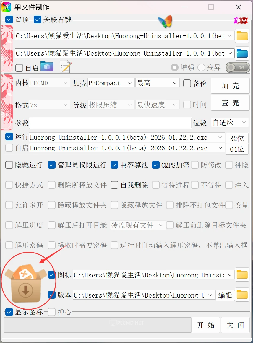 回想了一下,发觉PECMD可以直接在不抽取SHELL32.DLL文件的情况下直接在脚本界面显示出图标。